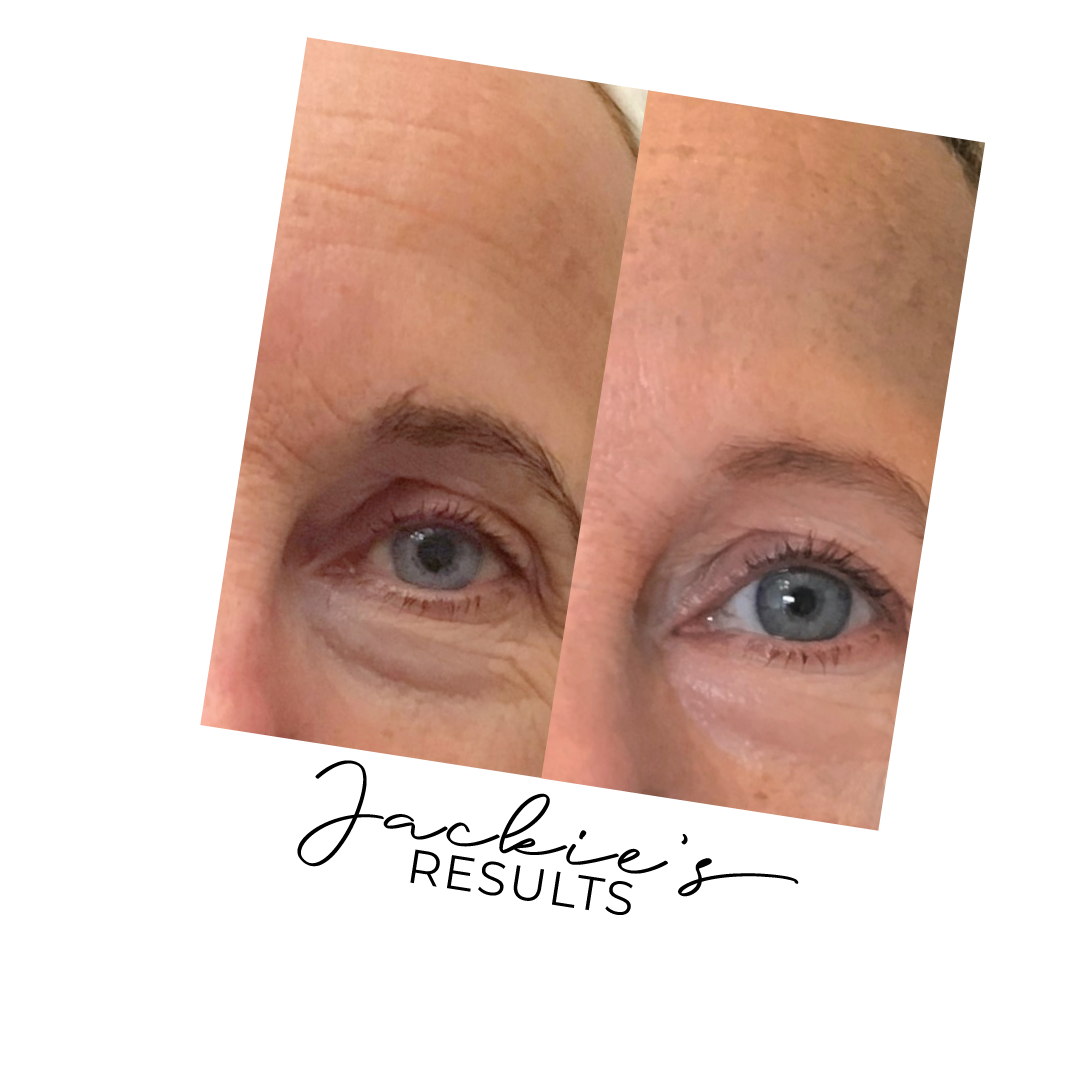 • Jackie's before and after's speak for themselves! In under 4 weeks her wrinkles were less prominent and her undereye area was brighter and less puffy thanks to our Marine Collagen range!